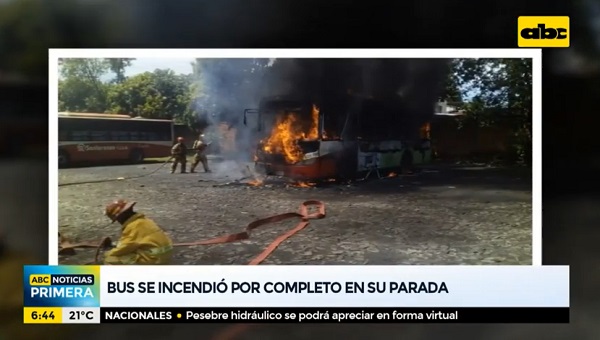 En la tarde de este domingo, un bus climatizado de la Línea 27, ardió en llamas en su parada, ubicada en el km 24 de la Ruta PY 02, en el barrio Campo Verde, de Capiatá.
