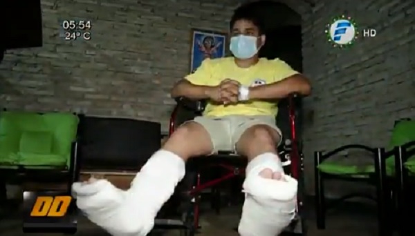 Este es Héctor Valdez Bombero de k9 Villa Elisa, hoy en la busqueda de Cesar Olmedo cayó mas de 5 metros sobre rocas y se rompió los dos tobillos, hablen de coraje y les mostramos la foto de nuestro Voluntarios 🇵🇾💪‼️🇵🇾🇵🇾🇵🇾 pic.twitter.com/dJowdiIdj4