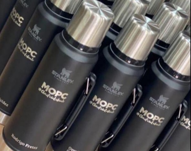 Los artículos tenían grabados nombres de personas y la inscripción de las siglas del Ministerio de Obras Públicas y Comunicaciones (MOPC). De inmediato llamó la atención, considerando que cada termo cuesta alrededor de G. 400.000 cada uno. Con la impresión, el costo podría incrementarse por encima de los G. 500.000.