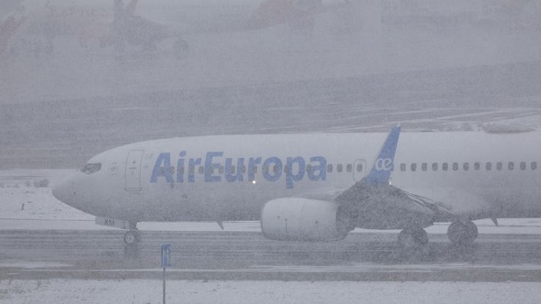 Debido a la ola de frío que azota al territorio español, el aeropuerto de Madrid-Barajas canceló sus operaciones este sábado.
