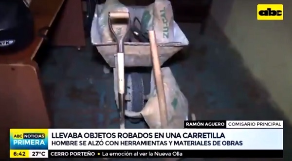 El malviviente fue detenido luego de alzarse con varias herramientas y materiales para obras. Alzó varios de los objetos, incluido cemento, en una carretilla sustraída.