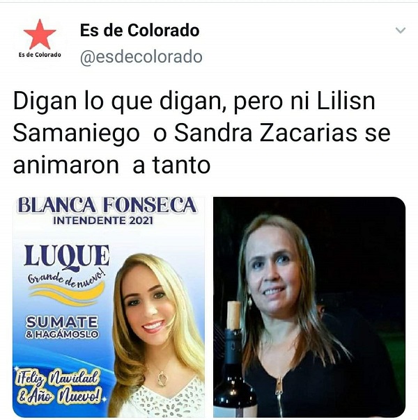 Voten a Blanca Fonseca para intendenta de Luque, una mujer fidedigna y sincera como su foto de afiche. pic.twitter.com/ADZdH9fkLY