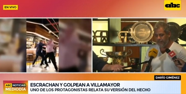 En la tercera oportunidad donde los presentes retomaron el pedido y cuando los tonos subieron, Giménez explicó que debido a que Villamayor agredió a su esposa fue hasta él. En ese momento el empresario le empujó y el integrante del Ejecutivo le jugó un golpe, desatándose la pelea viralizada en redes sociales.