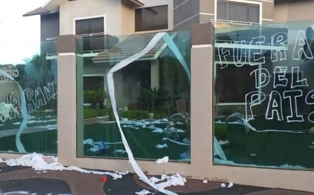 «Fuera de mi país» escribieron los manifestantes en la vereda de la casa de Janice Neukamp, en Curuguaty. #1020AM pic.twitter.com/lF1iTYixqY