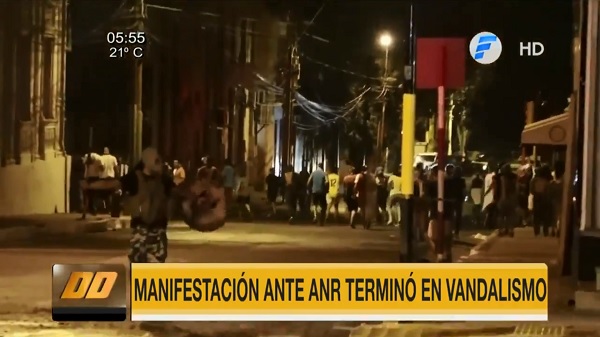 La manifestación siguió frente a la ANR, pero nuevamente infiltrados se encargaron de que todo termine en vandalismo.