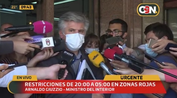 El titular del Ministerio del Interior señaló que las personas que circulen hasta la medianoche, deberán justificar su presencia en las calles con una factura de local gastronómico en el que estuvo.