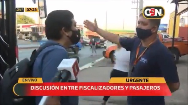 ⚠ Uno de los colectivos fue intervenido por aglomeración sobre Eusebio Ayala y usuarios reclamaron a los fiscalizadores que deben llegar hasta sus trabajos.