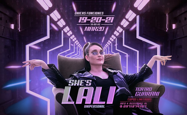 She’s Lali tendrá tres únicas funciones y serán el viernes 19, el sábado 20 y el domingo 21 de marzo, a las 19:00, en el Teatro Hotel Guaraní.