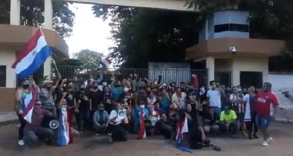 Al son de “que se vayan todos, que no quede ni uno solo” los manifestantes abandonaron la Agrupación Especializada de la Policía, con megáfonos y banderas paraguayas.