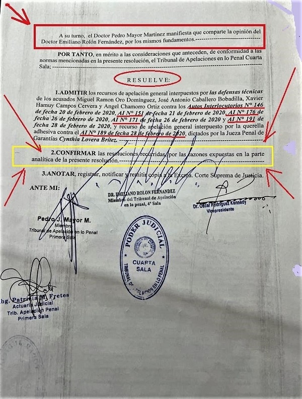 En ese sentido, los miembros del Tribunal confirmaron las resoluciones recurridas por la defensa de los involucrados.