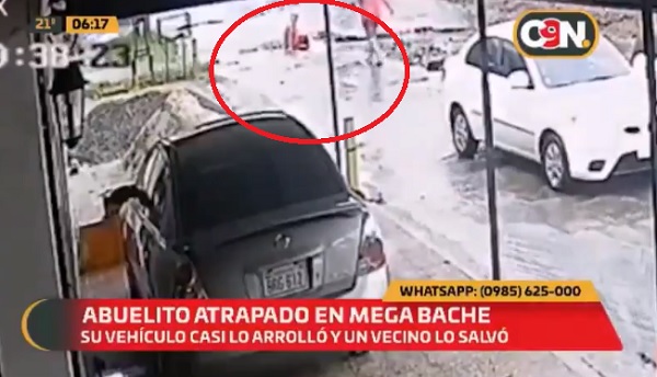 😕 Abuelito quedó atrapado en mega bache en San Lorenzo.