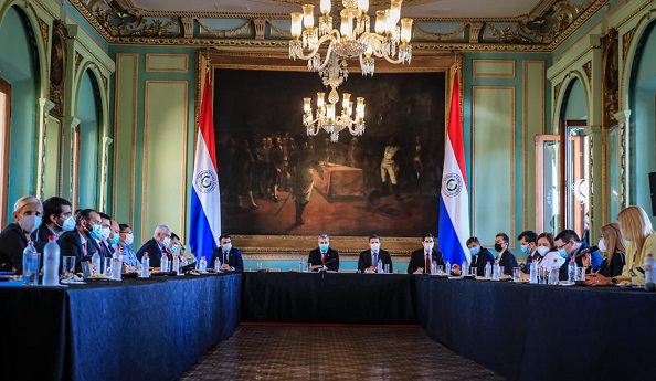 El presidente Mario Abdo Benítez encabezó primeramente el encuentro donde participaron los representantes de las diferentes instituciones estatales.