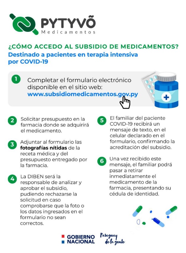 De acuerdo a los datos publicados, fue habilitado el portal www.subsidiomedicamentos.gov.py. Mediante este sistema, será posible solventar gastos de internados en terapia intensiva a causa del Covid-19.