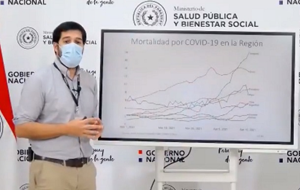 Dijo que, si Paraguay va a un ritmo similar al de Uruguay, se superará la cifra de 100 decesos en un día la próxima semana. “Tenemos un ritmo un poco más lento, pero en ascenso”, dijo al respecto.
