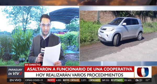 Posteriormente se dieron a la fuga a bordo de un rodado, el cual abandonaron en su huida. La suma sustraída es de G.13.450.000 en cheques y G. 18.000.000 en efectivo.