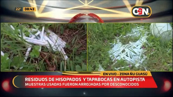 Una importante cantidad de hisopos que son utilizados para sustraer muestras de pacientes con Covid-19 fueron hallados al costado de la autopista Ñu Guasu.