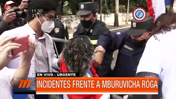 En la mañana de este viernes, un grupo de médicos salieron a las calles a manifestarse y al llegar a la avenida Mariscal López de Asunción se produjo un incidente con la Policía Nacional, quienes con vallas de seguridad cerraron la vía pública, para que los trabajadores de blanco no puedan llegar hasta Mburuvicha Róga.