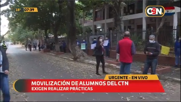 Este miércoles, estudiantes de diversas especialidades se manifestaron frente a la sede del Colegio Técnico Nacional exigiendo un nuevo plan para retornar a las clases presenciales.