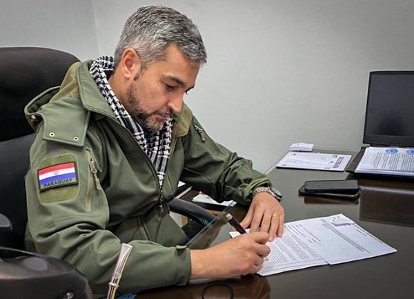 Firma de decreto por parte del Presidente. Foto: Twitter Paraguay TV.