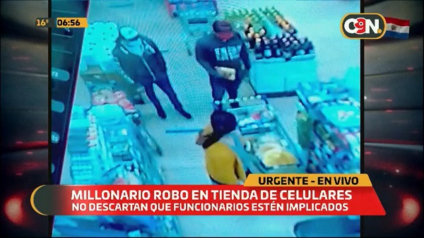 Imágenes de circuito cerrado muestran el actuar de una persona que ingresó a un local que vende celulares, dentro de un conocido supermercado en Ñemby, haciéndose pasar por cliente, con el objetivo claro de alzarse con productos de alto valor.