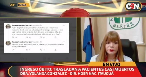 La directora del Hospital Nacional de Itauguá, doctora Yolanda González, criticó el actuar de centros asistenciales que envían sin previo aviso a pacientes complicados por Covid-19 y que incluso, llegan sin signos vitales.