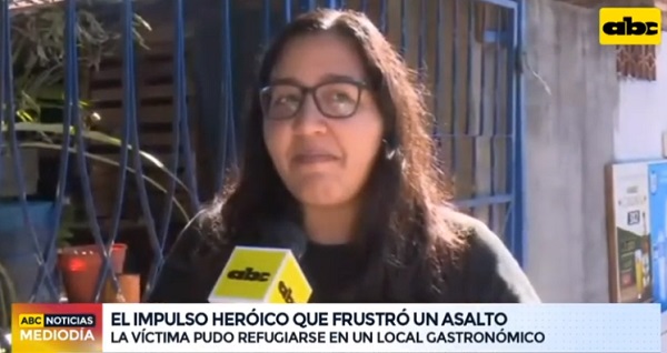 En ese momento, llegaron los motochorros que quisieron despojarle el dispositivo, pero debido a que los mismos, aparentemente, no contaban con armas, se resistió y forcejeó con sus victimarios. Luego, llegó Antonio Díaz, quien propinó golpes a los delincuentes para evitar el asalto, en ese momento, la joven ingresó a una confitería, donde se resguardó.