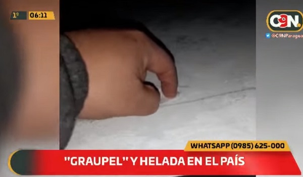 Algunos denominaron a este fenómeno climático como “nieve”, sin embargo, Violeta González de la dirección de Meteorología, en contacto con C9N, explicó que se trata de graupel, que se forma en la nube con temperaturas muy bajas en altura.