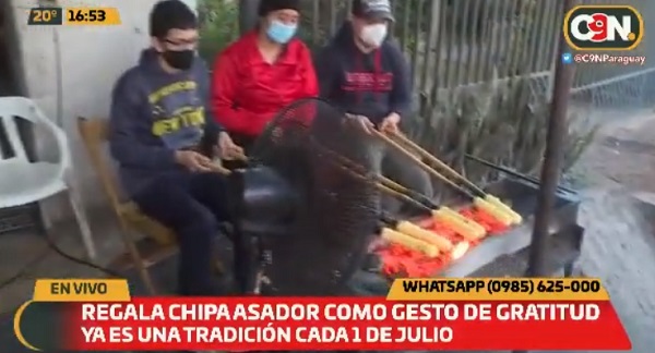Una familia dedicada a la venta de chipa asador realizó este jueves 1 de julio su “día de gracias” ofreciendo gratuitamente sus productos a los clientes.