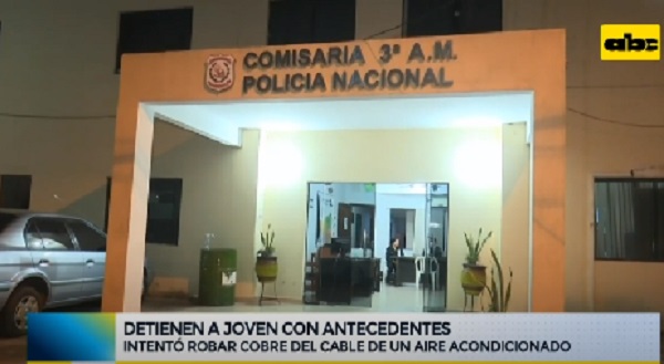 El oficial de la policía, Diego Acuña, relató que el joven trepó por la pared del del local del Sistema Nacional de Formación y Capacitación Laboral (Sinafocal), ubicado en Iturbe y Eligio Ayala, de Asunción, con el objetivo de robar el cobre de un aire acondicionado.