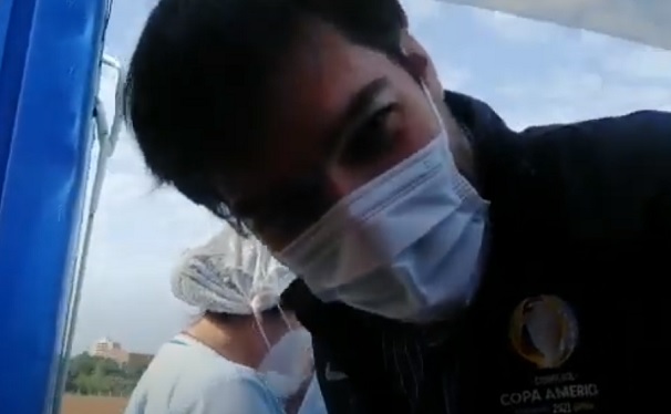 El director de Vigilancia de la Salud, Dr Guillermo Sequera, irrumpió en un vacunatorio, aparentemente en ubicado en la Costanera de la capital y una mujer se mostró sorprendida.