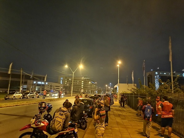 Varios hinchas del Ciclón se congregaron en inmediaciones de la Conmebol, a modo de protesta, tras el error arbitral registrado durante el juego ante Fluminense por la Copa Libertadores.