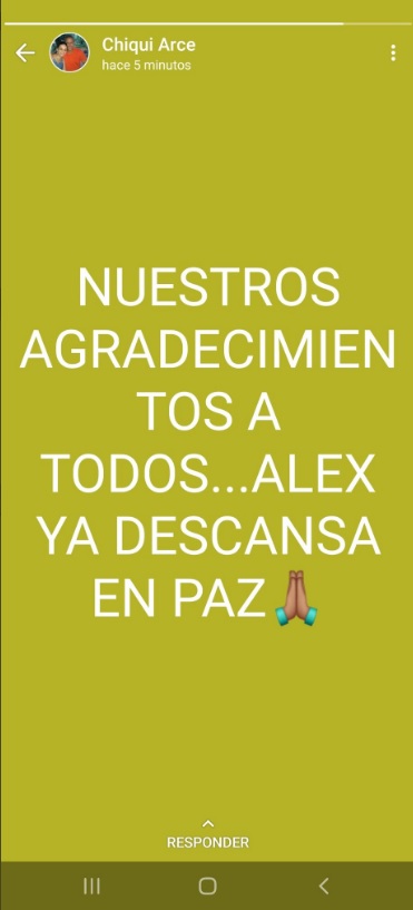 “Nuestros agradecimientos a todos… Alex ya descansa en paz”, fue lo que escribió Arce en su estado de WhatsApp.