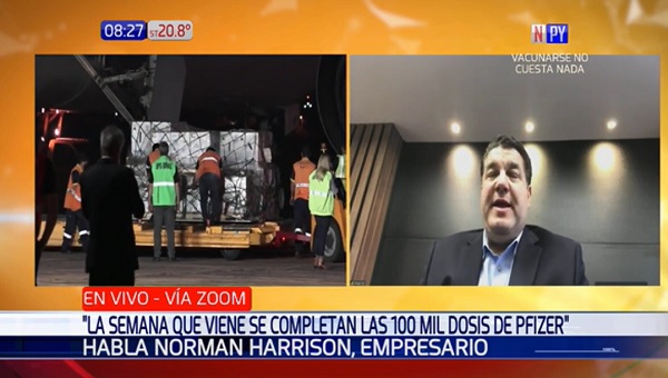 Harrison informó que en la tarde de este viernes llegará la segunda partida de vacunas que forman parte de la compra de un 1.000.000 de dosis de las vacunas Pfizer. Explicó que se tiene que cumplir la totalidad de 100.000 dosis en julio.