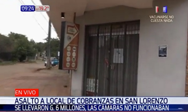Un local de cobranzas fue visitado por delincuentes, quienes se llevaron la suma de G. 6 millones.