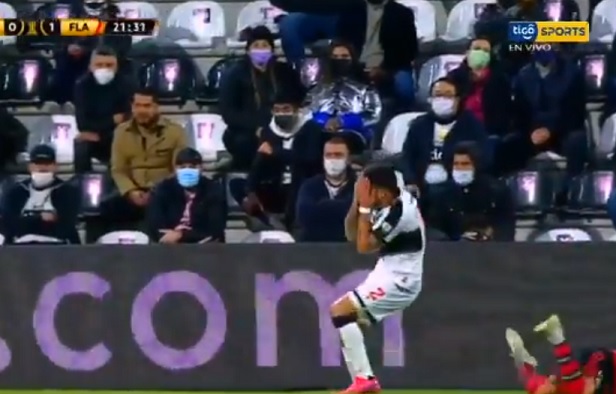 El lateral decano tuvo un encontronazo con el uruguayo del Flamengo, Giorgian De Arrascaeta, y fue asistido en el campo.