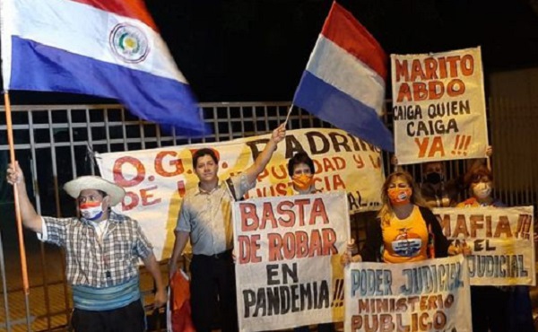 Miembros de Ciudadanos Autoconvocados Comisión Escrache (CACE) estuvieron presentes en el la lectura de sentencia de Oscar González Daher y su hijo Oscar Rubén González Chaves, y celebraron la decisión de los miembros del Tribunal de Sentencia.