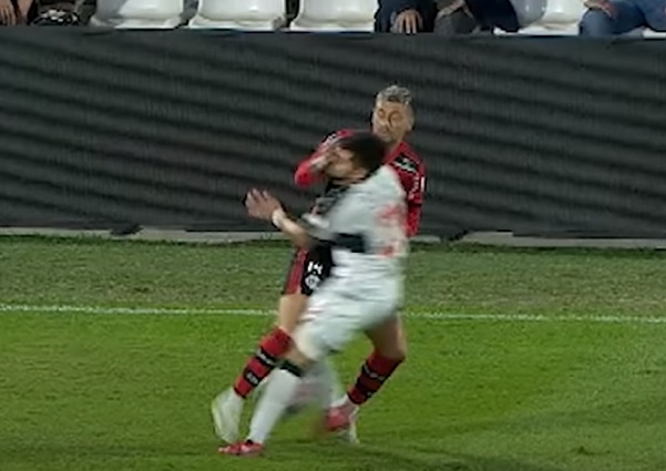 En el primer tiempo, Salazar tuvo un encontronazo con Giorgian De Arrascaeta, donde el franjeado sufrió un fuerte golpe.