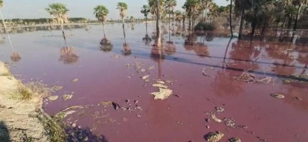 ❌El lago Ypoá está al borde de un eventual desastre ecológico por el derrame de desechos industriales de color rojizo en el predio de la empresa Durli Leathers S.A.