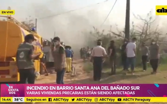 Una mujer dijo a ABC TV que su madre fue derivada a un centro asistencial debido a la inhalación de humo. Afirmó que al menos tres viviendas fueron totalmente consumidas por las llamas.