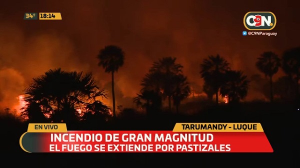 🔴Incendio de gran magnitud en Tarumandy.#Luque: Gran incendio en Tarumandy, donde el fuego se extiende por pastizales. 👇#ParaguayenLlamas. 🔥.