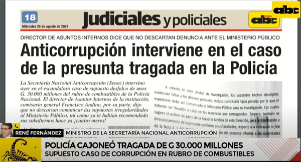 La Secretaría Nacional Anticorrupción intervinó en el supuesto caso de un millonario desfalco de G. 30.000 millones en la policía, específicamente en el rubro de los combustibles.