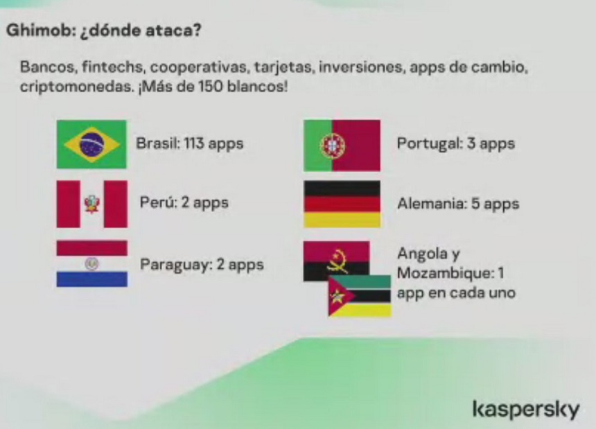 “Ataca siempre tres instituciones financieras en Brasil, pero también ataca en toda Latinoamérica como dos aplicativos financieros en Perú, dos en Paraguay, tres en Portugal, cinco en Alemania”, lanzó, para luego manifestar que puede operar en todo el mundo.