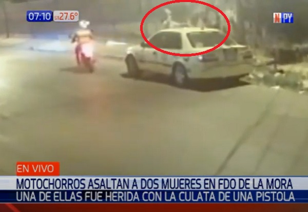 En el video publicado por Noticias Paraguay, se puede ver que uno de los motochorros descendió del biciclo y corrió directamente hacia las dos mujeres, produciéndose un violento forcejeo, ínterin en el cual, el delincuente golpeó a una de ellas con la culata de un arma de fuego. Finalmente, el asaltante no se llevó nada.