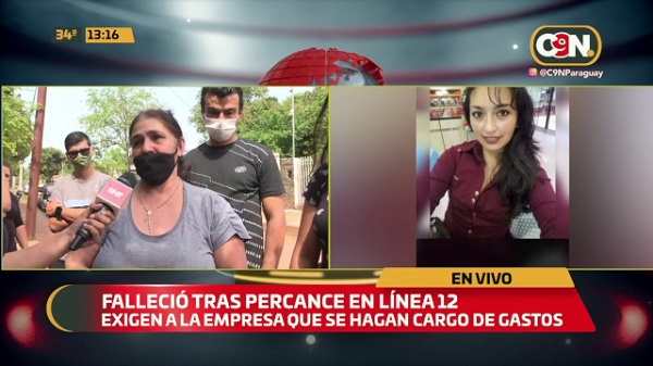 Miguel Echeverría, esposo de la fallecida señaló que ellos tuvieron la información de que ella se accidentó y que se golpeó cuando intentaba bajarse del ómnibus, sin embargo, este freno de golpe y otro pasajero cayó sobre ella.