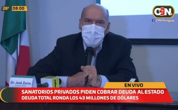 José Zarza y Raúl Doria, presidente y vicepresidente de la Asociación de Sanatorios y Hospitales Privados, señalaron que actualmente el Gobierno les debe una suma de G. 304.705.645.371 (unos USD 43.591.651) por las internaciones de pacientes con Covid-19, tanto en salas comunes como en Terapia Intensiva.