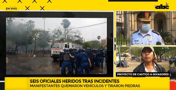 El comisario principal Ever Molinas señaló a ABC Tv que son seis los agentes policiales heridos tras los incidentes frente al Congreso.