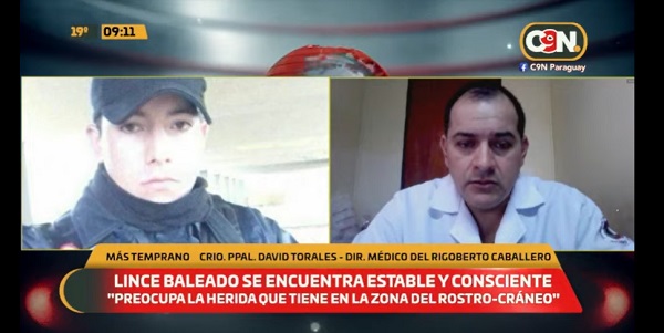 El director médico del Hospital Rigoberto Caballero, comisario David Torales, informó acerca del estado de salud de Diego Orzuza, de 24 años, agente del Grupo Lince que fue herido de cuatro impactos de bala por delincuentes, tras resistirse a un asalto.