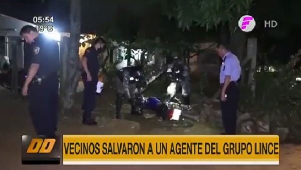 Vecinos salvaron a un agente del Grupo Lince. El mismo se encontraba en su día libre cuando fue baleado por delincuentes en la ciudad de Areguá.