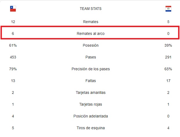 De acuerdo a lo mencionado por periodistas paraguayos y según las estadísticas que reporta Google, no se registraron disparos al arco durante el juego.