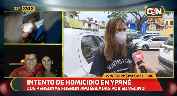 La mujer fue tomada por otras dos, quienes la apuñalaron con un cuchillo de mesa en la espalda. Mientras que el hombre fue macheteado por un sujeto y se llevó la peor parte, pues tiene lesiones en varias partes del cuerpo, una perforación en el pulmón y casi hubo desprendimiento de la mano, según relató la esposa de la víctima en contacto con C9N.